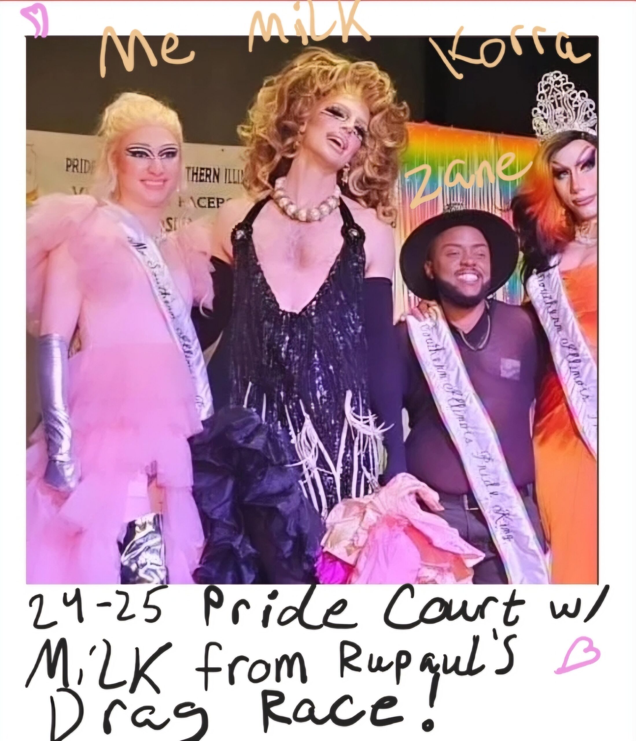 Leah Fantasy (they/them) is a nonbinary drag performer who started their Drag Career on the theatre stage in 2022 as a working actor in Kinky Boots with Venice Theatre where they played the Referee Angel. Leah holds a Bachelor’s of Fine Arts in Musical Theatre Performance from Southern Illinois University. Their first show in Southern Illinois was in September 2023 at the Varsity Theater in Carbondale, on the same stage they were later crowned Mx. Southern IL Pride after winning every category of the pride pageant presented by Pride in Action in June of 2024. Since being crowned they have even gotten to work with 2 contestants from Rupaul’s Drag Race, Milk from Season 6 & All-Stars 3, and Widow Von’Du from Season 12. These accomplishments and so many more opportunities were helped by our wonderful community we have in Southern Illinois and especially by Korra DeVil who adopted Leah into her drag family and provided so much essential coaching and booking opportunities.